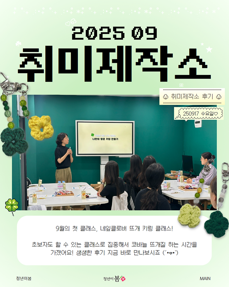 청년이봄 2025년 9월 취미제작소 - '행운의 뜨개 키링 만들기' 클래스