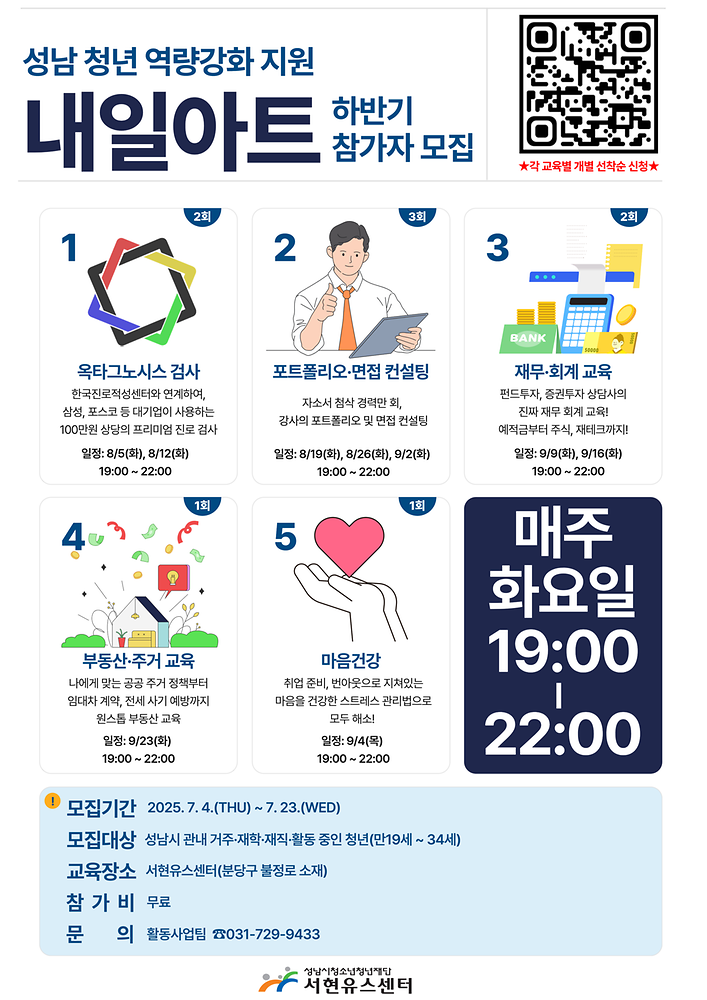 [서현유스센터] 2025. 성남 청년 역량강화 지원 『내일 아트』 참가자 상반기 모집(~07.23.)